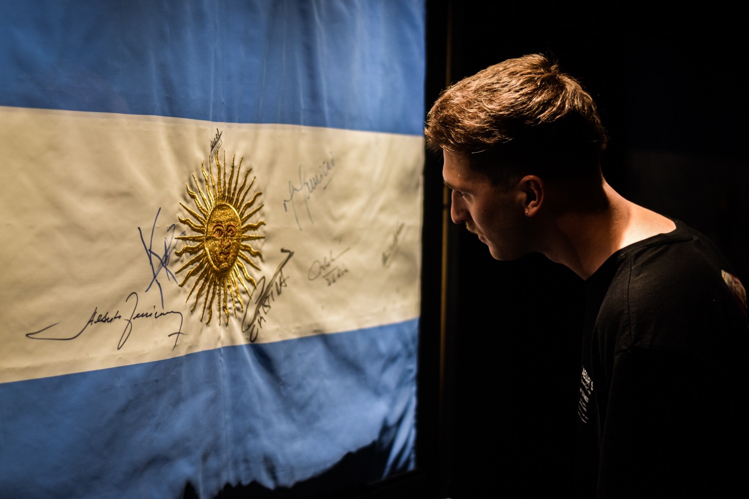 Entre ellos, se destaca la bandera argentina firmada por los presidentes desde el regreso de la democracia en Argentina, en el año 1983.
