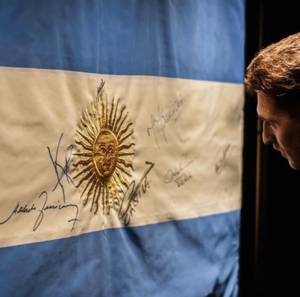 La bandera argentina puede encontrarse en el Museo Internacional para la Democracia. Está firmada por todos los presidentes desde el regreso de la democracia en nuestro país. Testimonia de esta manera la continuidad democrática y aquello que nos robaron las dictaduras: el derecho a elegir a nuestros representantes.